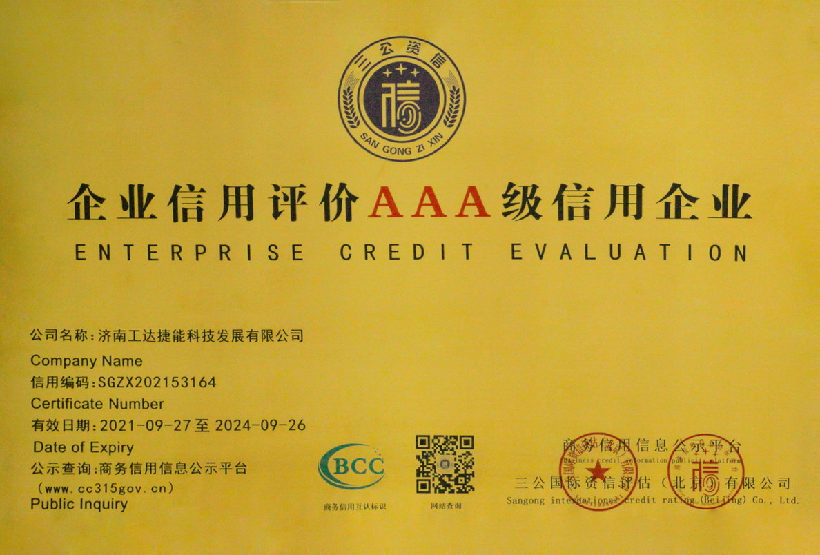 ——濟南工達榮獲企業(yè)信用評價AAA級信用企業(yè)誠信,是企業(yè)寶貴的無形資產(chǎn),是企業(yè)的名片和市場通行證。濟南工達自2003年成立以來,便以“誠...